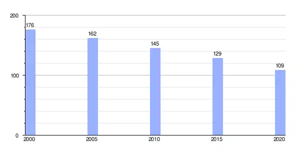 | Gráfica de evolución demográfica de Mosteiro (aldea) entre 2000 y 2020 |