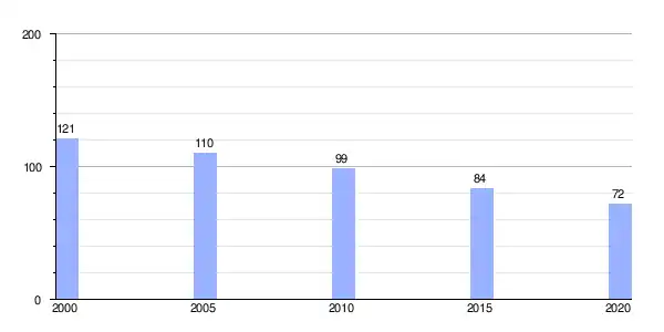 | Gráfica de evolución demográfica de Mota (parroquia) entre 2000 y 2020 |