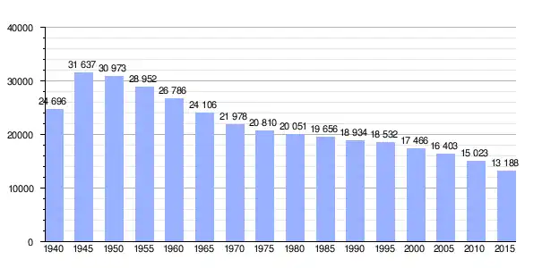 Según los datos del censo japonés, la población de Motegi ha disminuido en los últimos constantemente 70 años.[5]