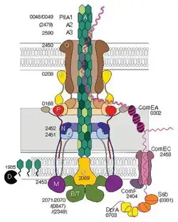 ↑Merz, A. J.; So, M.; Sheetz, M. P. (2000). «"Pilus retraction powers bacterial twitching motility"». Nature. PMID10993081. doi:10.1038/35024105.