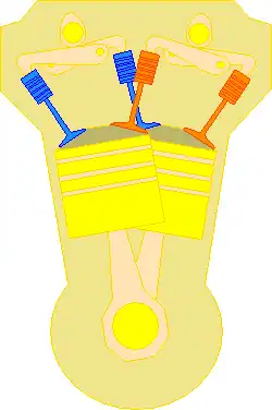 Es similar a un motor en V, pero con las dos bancadas desplazadas y acomodadas una junto a la otra en un ángulo de 10º, 6º o 15°, en lugar de los más comunes de 45°, 60°, o 90° encontrados en los motores en V convencionales.