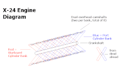 El X-24 es uno de los pocos motores con configuración en X que se conocen que fueron puestos en producción. El diseño consiste de un par de motores V-12 unidos con un cigüeñal en común, siendo más liviano que los diseños similares con disposición en W o en H, los cuales requieren dos cigüeñales. Sin embargo, ninguno de los motores X-24 existentes tuvieron éxito; unos pocos entraron en servicio, y el tiempo de producción fue muy limitado. Desarrollos de posguerra de los motores turbojet y turbofán obviaron la necesidad de grandes motores de avión de este tipo.