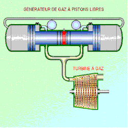 Después del éxito del compresor de aire de pistones libres, varios grupos de investigación industrial comenzaron a desarrollar estos generadores, con el gas producido se hacía funcionar una turbina. Al finalizar los años 1940, los constructores automovilísticos estadounidenses General Motors y Ford desarrollaron prototipos de motores destinados a propulsar sus vehículos.
