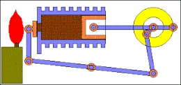 La variable más común es el llamado Motor Stirling que se desarrolló en 1816 por Robert Stirling el cual puso un quemador para el calentamiento del aire en el interior del cilindro el cual era activado por medio del giro de un volante de inercia.