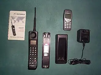 El Motorola International 3200 fue el primer teléfono móvil digital sostenible en una mano, fue presentado en 1992, seguido por los más compactos 5200, 7200 y 7500, introducidos en 1994. Aunque primero se lanzó el International 1000 y 2000, (bastante grandes =>pequeña maleta portátil), y aunque eran los primeros teléfonos portátiles GSM, no tenían certificación GSM, por lo tanto no podían conectarse oficialmente a la red (el primero en tener el certificado GSM fue el Orbitel TPU 900).[1]