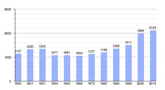 | Gráfica de evolución demográfica de Mougon entre 1800 y 2014 |