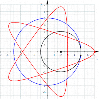 La epicicloide es la curva generada por la trayectoria de un punto perteneciente a una circunferencia (generatriz) que rueda, sin deslizamiento, por el exterior de otra circunferencia (directriz). Es un tipo de ruleta cicloidal.