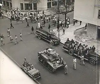 ![]() El ejército brasileño espera frente a la residencia de Café Filho para impedirle reasumir el cargo de presidente. | ||||