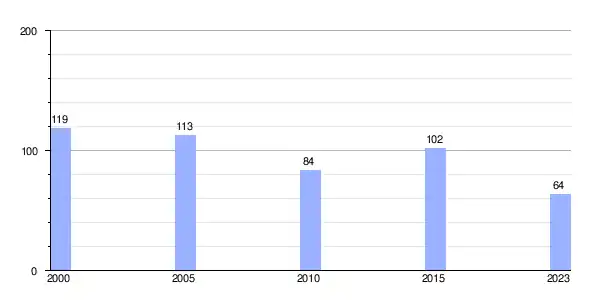 | Gráfica de evolución demográfica de Moyalde (parroquia) entre 2000 y 2023 |