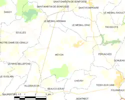 Moyon era una comuna francesa situada en el departamento de Mancha, de la región de Normandía, que el 1 de enero de 2016 pasó a ser una comuna delegada de la comuna nueva de Moyon-Villages[2] al fusionarse con las comunas de Chevry y Le Mesnil-Opac.