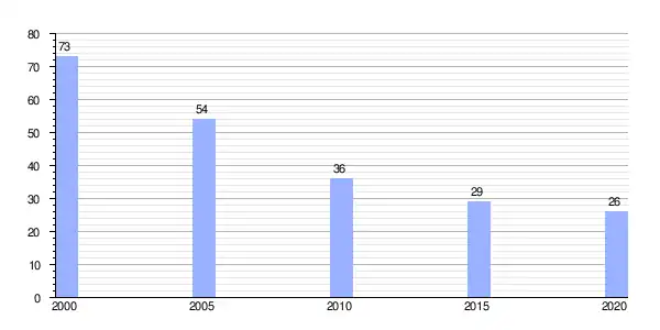| Gráfica de evolución demográfica de Muñís (aldea) entre 2000 y 2020 |