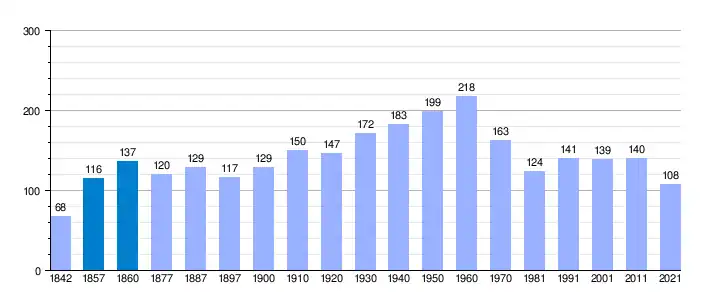 | Gráfica de evolución demográfica de Muñomer del Peco[5] entre 1842 y 2021 |