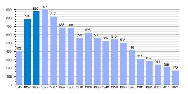 Población de derecho según los censos de población del INE Población de hecho según los censos de población del INEEntre el censo de 1857 y el anterior, crece el término del municipio porque incorpora a 495060 (Gramedo) |