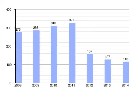 | Gráfica de evolución de la deuda viva del ayuntamiento entre 2008 y 2014 |