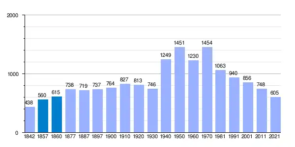 | Gráfica de evolución demográfica de Muelas del Pan[11] entre 1842 y 2021 |
