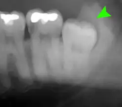- ↑ Phillips C, White RP (Septiembre 2012). "How predictable is the position of third molars over time?". Journal of Oral and Maxillofacial Surgery. 70 (9 Suppl 1): S11 – S14. doi:10.1016/j.joms.2012.04.024. PMID 22705213.