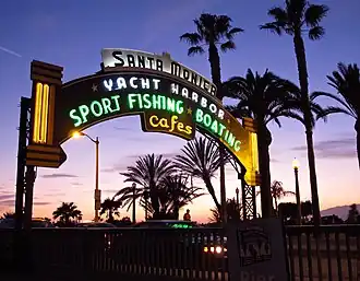 ![]() La emblemática entrada al Muelle de Santa Mónica. | ||