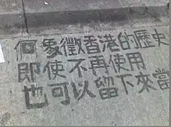 - ↑ Ng, Kang-chung; Danny Mok (18 de diciembre de 2006). «Front line in preservation battle switches to Queen's Pier». South China Morning Post (en inglés) (Hong Kong).