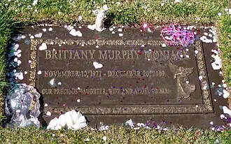 - ↑ Dillon, Nancy (24 de diciembre de 2009). «Brittany Murphy's family, friends gather for somber Christmas Eve funeral». Daily News (en inglés). Archivado desde el original el 29 de diciembre de 2009. Consultado el 13 de febrero de 2011.