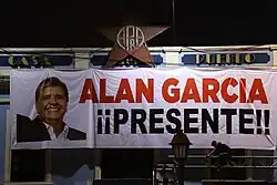 - ↑ Crónica del velorio de Alan García en Perú: llantos y gritos de “¡Alan dignidad!”. Publicado el 17 de abril de 2019. Consultado el 20 de abril de 2019.