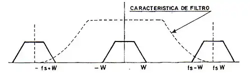 De la observación del espectro se deduce la posibilidad de recuperar simplemente pasando por un filtro paso-bajo cuya frecuencia de corte cumpla la condición: