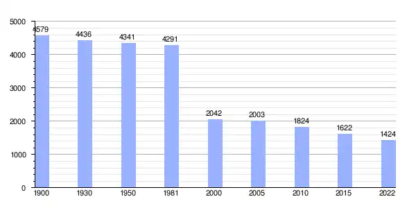 | Gráfica de evolución demográfica de Muíños entre 1900 y 2022 |