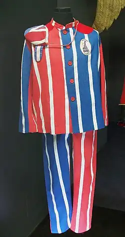 La colla original tenía solo treinta miembros, al parecer, porque ese era el número de uniformes disponibles. Estos uniformes se componían de un vestido arlequinado de tela de rallas azules y rojas sobre fondo blanco.[1] El tejido era de tela basta y fuerte, de la vulgarmente conocida como de colchón, y parece que la combinación concreta de colores se debía a que esa era la que disponían los proveedores del vestuario. La indumentaria de la agrupación consta de una blusa ceñida y recta, abotonada por delante, pantalones largos, gorro con orejeras y espardeñas de suela delgada.[2]