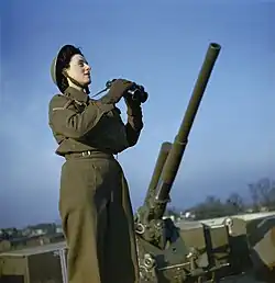 Las mujeres del Comando Antiaéreo, unas 56.000 en 1943, destacaron por el manejo de cañones contra la Luftwaffe y los misiles Fieseler Fi 103.[16][17] La hija del primer ministro Winston Churchill estaba allí, dijo que cualquiera que salvara 40.000 hombres había obtenido el equivalente a una victoria y que matar al enemigo se consideraba demasiado masculino.[18] La primera caída del Comando ocurrió en abril de 1942.[19]