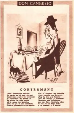 La revista contaba con viñetas de humor gráfico con personajes como Don Cangrejo, un antiperonista acérrimo; Mister Whisky and Soda, un periodista estadounidense y Bobalicón, alguien "con pocas ideas", que creía a rajatabla lo que leía en los diarios "serios" y "de opinión"; entre otros.[1]