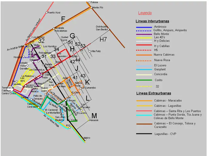 * Ambrosio / Golfito Amparo Amparito * Nueva Cabimas / Nueva Rosa * Punta Gorda / Cabimas - Tía Juana * H y Cabillas / H5 / Federación / Villa Feliz / Ciudad Sucre / Av 51