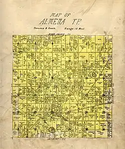 Según el censo de 2010,[4]​ había 4992 personas residiendo en el municipio de Almena. La densidad de población era de 55,26 hab./km². De los 4992 habitantes, el municipio de Almena estaba compuesto por el 94.31% blancos, el 1.22% eran afroamericanos, el 0.5% eran amerindios, el 0.94% eran asiáticos, el 0.08% eran isleños del Pacífico, el 0.92% eran de otras razas y el 2.02% pertenecían a dos o más razas. Del total de la población el 2.38% eran hispanos o latinos de cualquier raza.[5]