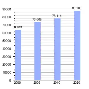 De acuerdo a los resultados del Censo de Población y Vivienda de 2020 realizado por el Instituto Nacional de Estadística y Geografía, la población total del municipio es de 88 106 habitantes, lo que representa un crecimiento promedio de 1.2% anual en el período 2010-2020 sobre la base de los 78 114 habitantes registrados en el censo anterior. Al año 2020 la densidad del municipio era de 36,1 hab/km².[9]