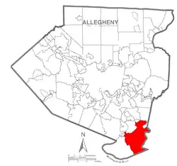 ![]() Ubicación en el condado de Allegheny ![]() Ubicación del condado en Pensilvania ![]() Ubicación de Pensilvania en EE. UU. | ||
