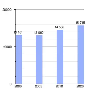 Cuenta con 15 715 habitantes, lo que representa un crecimiento promedio de 0.79% anual en el período 2010-2020 sobre la base de los 14 555 habitantes registrados en el censo anterior. Ocupa una superficie de 244km², lo que determina al año 2020 una densidad de 64,41 hab/km².[11]