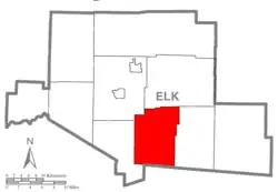 Ubicación en el condado de Elk ![]() Ubicación del condado en Pensilvania ![]() Ubicación de Pensilvania en EE. UU. | ||
