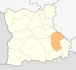Se encuentra ubicado al suroeste del país, cerca de la frontera con Grecia. Su capital es el pueblo de Garmen, pero la localidad más poblada es Ríbnovo.[2]