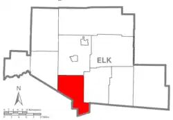 Ubicación en el condado de Elk ![]() Ubicación del condado en Pensilvania ![]() Ubicación de Pensilvania en EE. UU. | ||