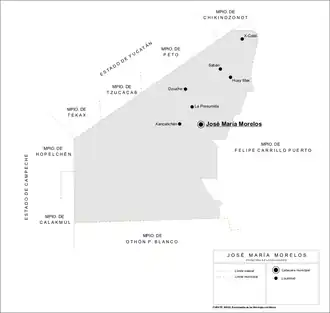 José María Morelos es uno de los 11 municipios del estado mexicano de Quintana Roo y uno de los 7 municipios con los que nació el estado de Quintana Roo en 1974, es municipio fronterizo con los Estados de Yucatán y Campeche. Es el único municipio del estado que no cuenta con una franja marítima. Su superficie es de 6739 km², tiene un total de 64 comunidades y las principales actividades económicas son las agropecuarias, tales como la agricultura, la apicultura, la silvicultura y la ganadería.