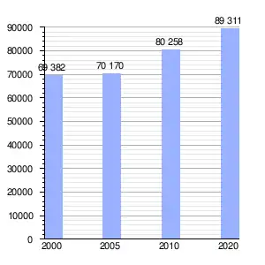 | Gráfica de evolución demográfica de Municipio de Maravatío entre 2000 y 2020 |