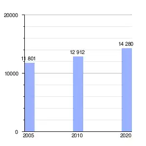 El 49.2% de los habitantes eran hombres y el 50.8% eran mujeres. El 87.4% de los habitantes mayores de 15 años (8724 personas) estaba alfabetizado.[10]