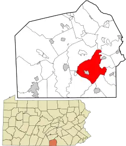![]() Arriba, ubicación entre las subdivisiones administrativas del condado de Adams. Abajo, ubicación en el condado de Adams en el estado de Pensilvania