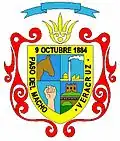 Estos campos están conformados por las letras «Paso del Macho, Veracruz», en su contorno iniciando de arriba hacia abajo y de izquierda a derecha. En la parte superior del contorno la fecha «9 de octubre de 1884». Dicho contorno es de color amarillo canario, coronando el escudo una mazorca de maíz estilizada del mismo tono amarillo y sobre ésta, un listón en color azul cielo.