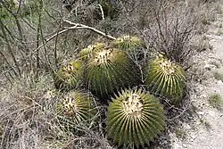 La flora consiste de mesquite, pirul, palo bobo, huizache, palo xixote, nopal, garambullo, biznagas, maguey y cardón.[3] Típico de un semi-desierto, Peñamiller tiene muchas especies de cactus. Actualmente, algunas de ellas, como la biznaga burra (Echinocactus platyacanthus), están en peligro de extinción.[4]