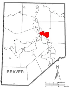 ![]() Ubicación en el condado de Beaver ![]() Ubicación del condado en Pensilvania ![]() Ubicación de Pensilvania en EE. UU. | ||