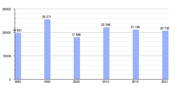 | Gráfica de evolución demográfica de São Filipe entre 1980 y 2021 |
