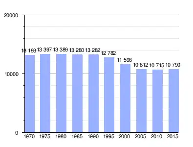 | Gráfica de evolución demográfica de Smedjebacken entre 1970 y 2015 |