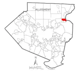 ![]() Ubicación en el condado de Allegheny ![]() Ubicación del condado en Pensilvania ![]() Ubicación de Pensilvania en EE. UU. | ||