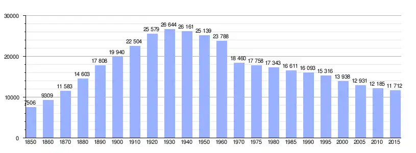 | Gráfica de evolución demográfica de Strömsund entre 1850 y 2015 |