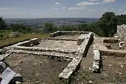 El número de muros que existió en la parte baja y media de dicha ladera es imposible definirlo. Hacia la parte alta sí se pueden observar aún varias murallas o fosos amurallados distintos; en los cuales se puede ver todavía dos vías de acceso, que fueron totalmente elaboradas con muros, pasillos excavados y la roca misma cortada del cerro. En el extremo norte del asentamiento, y aprovechando una estrecha meseta formada por dos barrancos, se levantó un muro de tepetate, del cual quedan pocos restos, y pocos metros más adelante se cavó un foso que corta en todo lo ancho la planicie, uniendo las dos barrancas laterales mencionadas. Este foso —de 5 m de ancho por 2.5 m de profundidad— se lograba cruzar por un angosto paso (quizá dos) cavado en parte en la roca y seguramente completado por un puente de madera. Unos 500 metros hacia el norte y ya fuera del asentamiento, se construyó un segundo foso.