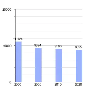 Cuenta con 8855 habitantes, lo que representa un decrecimiento promedio de -0.35 % anual en el período 2010-2020 sobre la base de los 9166 habitantes registrados en el censo anterior. Ocupa una superficie de 941.3 km², lo que determina al año 2020 una densidad de 9,407 hab/km².[10]